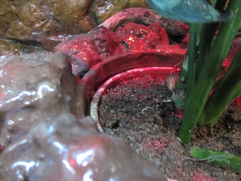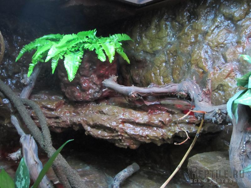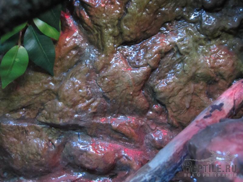 Стенки в терре выложенны натуральным камнем " дикарь барашек" ( как- то так называется) и покрыт гидроизоляцией "Уриплен" . Создаёт эффект мокрого камня + плесень,грибок и всякая прочая бяка не растёт на нём