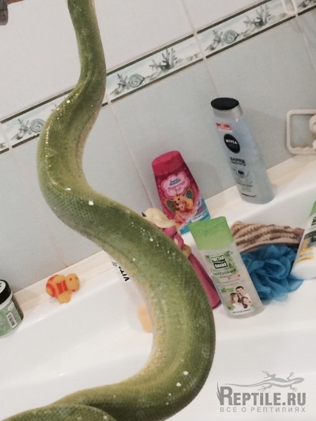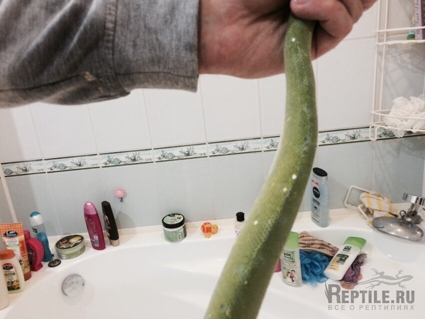 висит на ветке кольцами как и всегда, голова не свисает, а либо чуть задрана, либо поднята вверх. Периодически открывает пасть и пошипывает (именно на выдохе. На вдохе тишина). Мышечный тонус в норме - я его аккуратно крючком поглаживал - он пинается и обороняется как обычно и вообще как бы оживает, языком стреляет - долгие щелчки. Из пасти и носа выделений нет. Рот чистый.Хрипа нет. Аппетит в норме - с неделю назад скормил ему мышь размороженную (мышь сам морозил, повторно не размораживал. Из этой же партии уже был съедена мышь без последствий). Что меня заботит: кормил его 29 и примерно 7-8 - с этого момента он так и не прогадился до сегодняшнего дня. Сегодня я заметил на нем торчящие чешуйки и устроил ему купание в ванной. Там он прогадился и полинял у меня в рука. Не полиняла только голова. Сейчас лежит клубком на субстрате не шипит, но рот приоткрыт.
