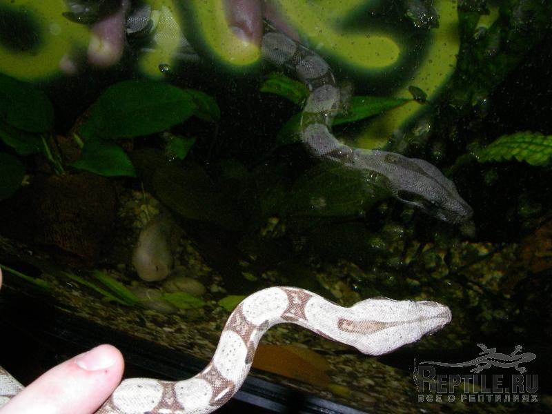 Например: За неделю пребывания у меня удав так ни разу и не гадил. Несмотря на то, что позавчера (15-го) без раздумий съел мышь. И за пару дней до того, как я его забрал, он перелинял и поел. Так же меня волнует его толстая хвостовая часть. До самой клоаки. А после - тоненький коротенький хвостик. Специально рассматривал фото молодых удавов и находил схожие пропорции только у самок. Но зондирование показало, что это самец. (зонд на глубину 10-ти щитков зашёл). Зондировал леской с оплавленным концом. Очень аккуратно. Также удалось сегодня во время купания в тёплой ванной (купал, чтоб он легче прогадился если есть проблемы), обследуя клоаку выдавить гемипенис. Один. Сделал это так: поступательными движениями от хвоста к клоаке и изгибая удава в районе клоаки. Вылезло нечто сиреневатое, заостряющееся к концу и с сосудиками вдоль ентого. Ок 1 см в длинну. Больше не давил. Второй извлечь не удалось. Удав на такие действия реагировал вполне нормально. За исключением того, что выпустил струю желтоватой жидкости с белыми составляющими погуще. Весьма пахучая жидкость. Похожа на ту, что ужи выпрыскивают для защиты, но не такая вонючая. После этого я успокоился насчёт того, что удав не гадил всё это время, но кроме того случая он так и не гадил.