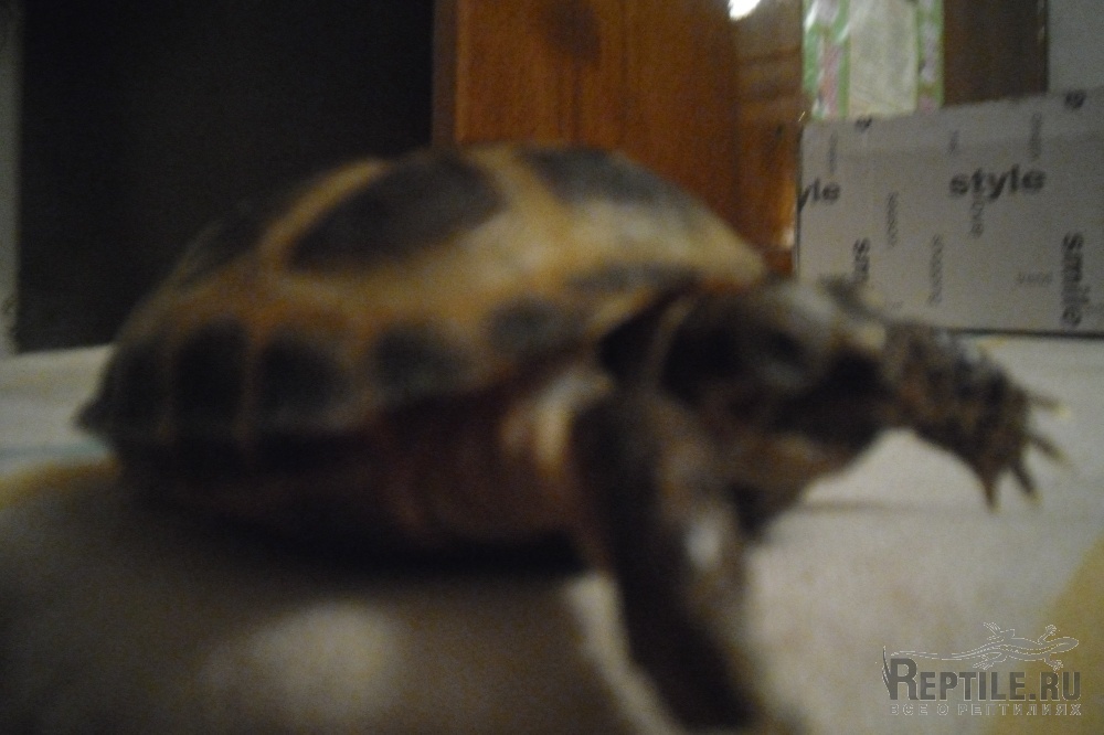 В декабре прошло года купила черепашку. Среднеазиатская, размер 8 см, про пол не знаю Покупала в зоомагазине, в декабре 2013 Коробка: 35x23 см. Температура в помещении 23-27 градусов. Грунт: опилочная стружка слоем около 1 см, подстилка и домик из сена