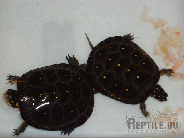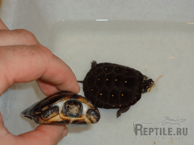 при создании акватеррариума споттедам необходимо помнить,что эта черепаха живет в очень мелкой воде,по сути дела в лужах,передвигаясь от одной лужи к другой.в разных частях ареала зимовка проходит в двух вариантах(в воде и на суше)встречается как в заболоченных местах так и в мелких ручьях.тут есть еще такой ньюанс,мой коллега Чесунов ,говорил,что не находил споттедов в местах с коричневой водой,но Роуч пишет что кислая реакция воды нужна(она предохраняет этот вид от ряда болезней)кроме того в домашних условиях мы делаем не много больше воды чем в природе(см 14)на фото мы часто видим клеммиса в еще более мелкой воде,но этой черепахе необходимо больше движения,вот поэтому мы и делаем воду глубже,но не намного(споттеды не важно плавают)