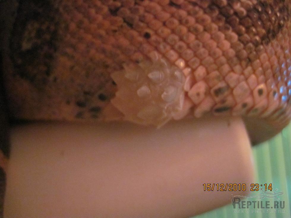 Помогите,что с удавом,сегодня заметили пузырь с прозрачной жидкостью-похоже на ожёг,но лампа на которой висит удав чуть тёплая,что это может быть???