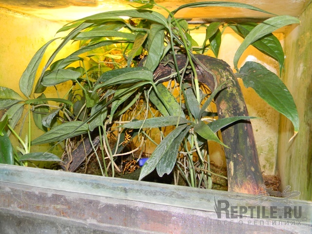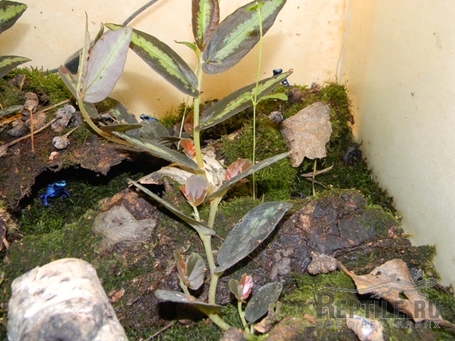 Террариум для маточной группы D. auratus "Reticulated". в центре вриезия, на листья которой откладывается икра.
