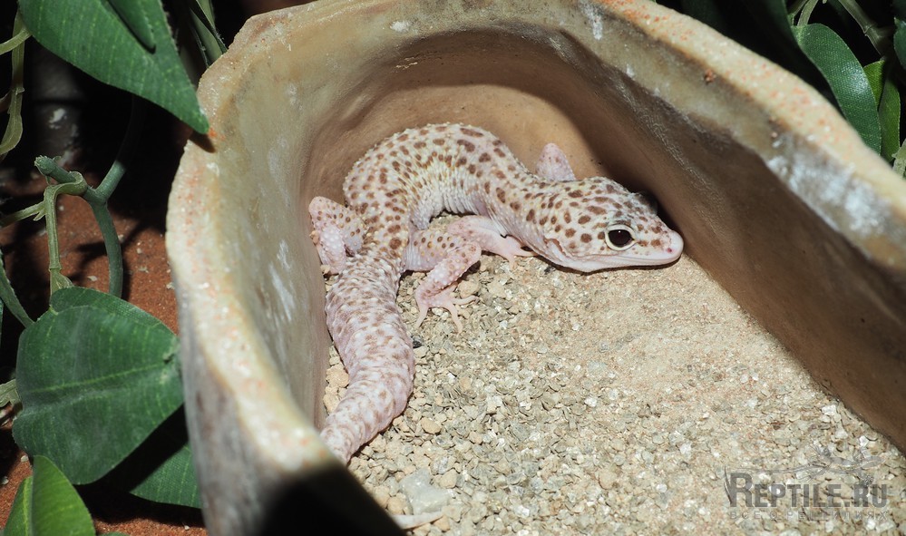 Самец морфы «Мак сноу эклипс» 2015 г.р., на руках сидеть не любит, без синдрома энигмы, кушает живой корм и разморозку
