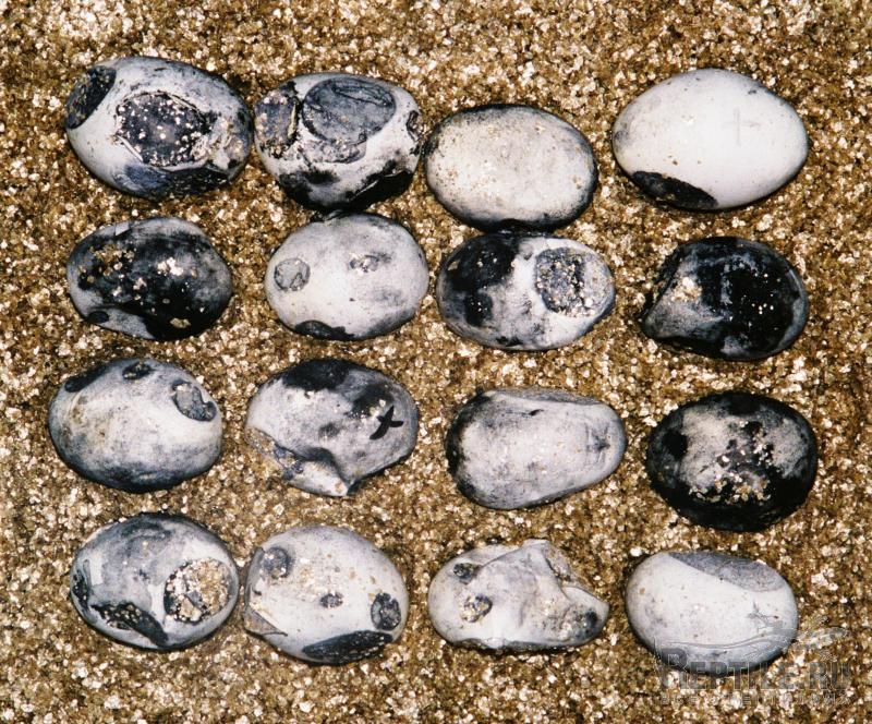 Чёрный цвет нанесенного на поверхность яиц порошка активированного угля.
