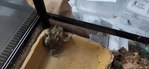 Содержится в террариуме 90*45, землю заменили на коврики месяца три назад, так как ела землю вместе с червяками.