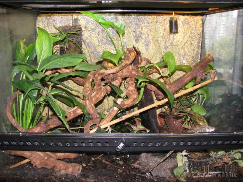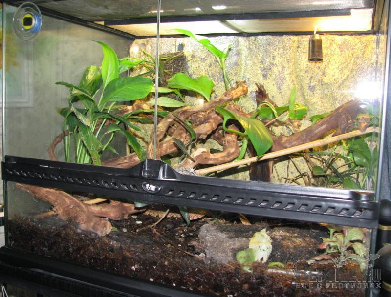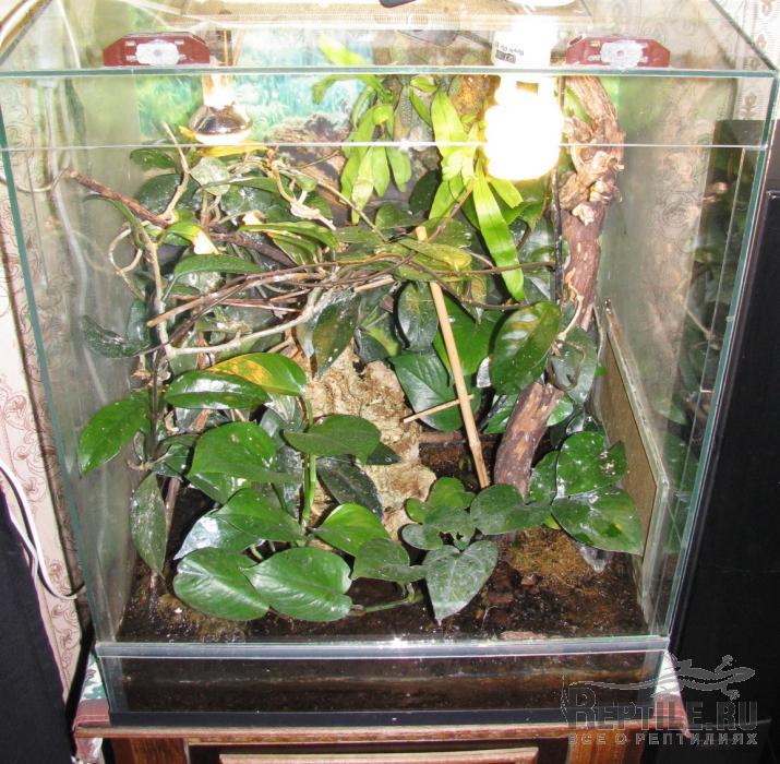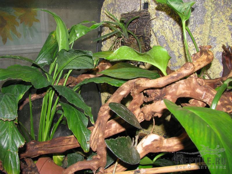 http://www.kirishi.r... , сажаю еще хойи (тоже отлично растут) http://garden.academ... и фикусы http://iplants.ru/fi... в основном мелколистные, но их можно легко залить и нужна хорошая вентиляция. Спатифиллумы хорошо расут во влажных терариумах. Специально не подсвечиваю, но у меня везде стоят 2 люминесцентные лампы, одна репти-гло и одна обычная, иногда 2 репти-гло, в некоторых террариумах есть еще и лампа накаливания. Растения сажаю в грунт без горшков, для сциндапсусов можно совсем маленький слой 2см., иногда сажаю в фонтан (водоем), получается, что корни в воде, а растение вьется по террариуму. В большинстве террариумов фоновая температура 27, под лампой до 35 (но под лампой растения сохнут, лучше сажать в стороне от нее). Орхидеи не очень хорошо растут, но некоторые мелкие прижились  названия их не знаю  Сейчас пробую разные Тилландсии, но пока не поняла какие как растут. Для начала советую сциндапсус, а дальше можно экспериментировать