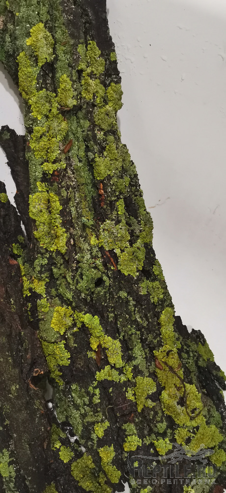 Вся эта красота на коре заточена под лесные условия, в террариуме она или свалится, или заплесневеет и потом уже свалится.
