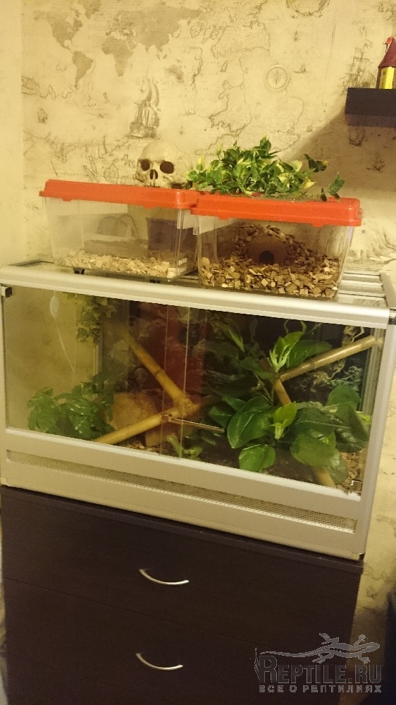 живет в тере с подогрево, температура средне 30 днем 25 ночью. поведение нормальное.