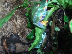 Кормил квакш тараканами, сверчками, а летом добавлялись кузнечики и ночные мотыльки. Через несколько месяцев стало понятно, что у меня пара. Одна из квакш оказалась в полтора раза меньше другой и более стройной - самец. Одна беде - не подавал голоса. Пришлось делать в террариуме дождевание. Ручеек был замкнут при помощи пластиковой трубки на флейту от аквариумной помпы, которую подвесил к потолку террариума.Результат сказался незамедлительно.