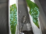 Листья растения с кладками икры (их было две) были аккуратно обрезаны и перенесены в отдельный водоем. Вода отстоянная, водопроводная с добавлением воды из аквариума.