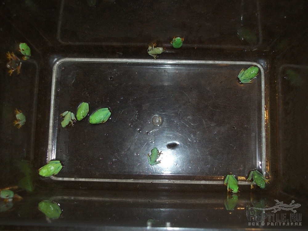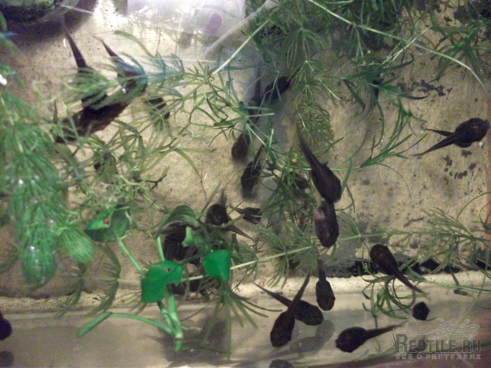 Головастики растут быстро и через 2 месяца покидают водоем, выбираясь на стенку еще с остатком хвостика