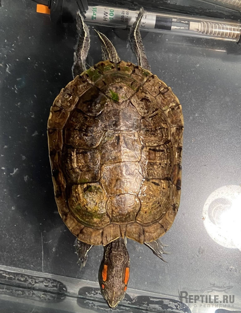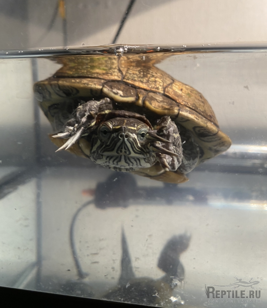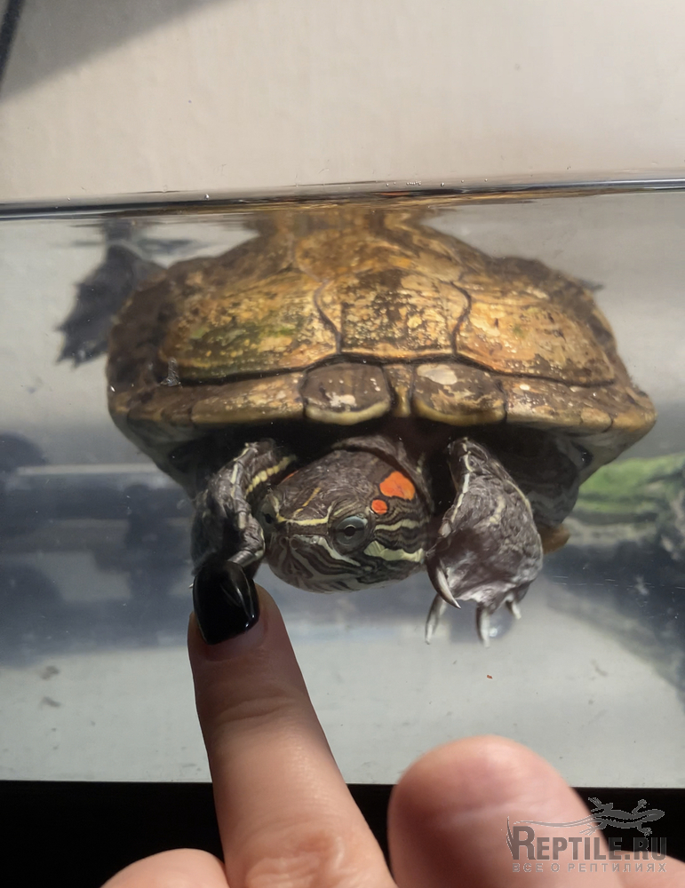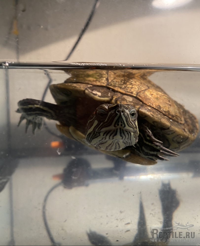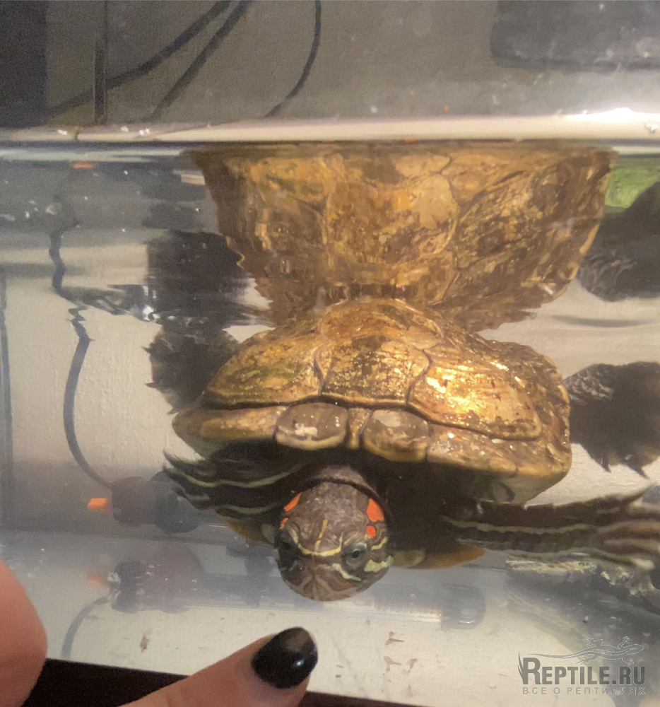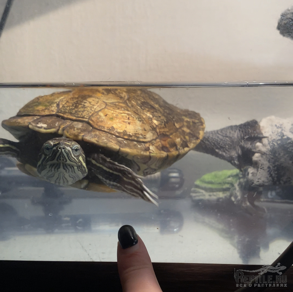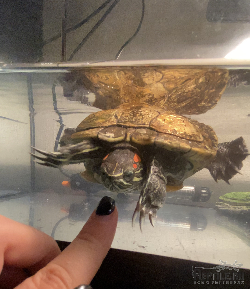 Запустили красноухую черепашку, скорее всего простыл (сквозняк, переохлаждение?) и вовремя не среагировали.