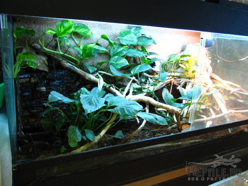 На мой взгляд, основные проблемы при содержании гоноцефалов связаны с другим: часто неважное состояние, особенно дегидратация при поступлении, и последующий стресс. Если с этим справиться, они вполне живут просто в умеренно влажных террариумах с хорошими градиентом и освещением.