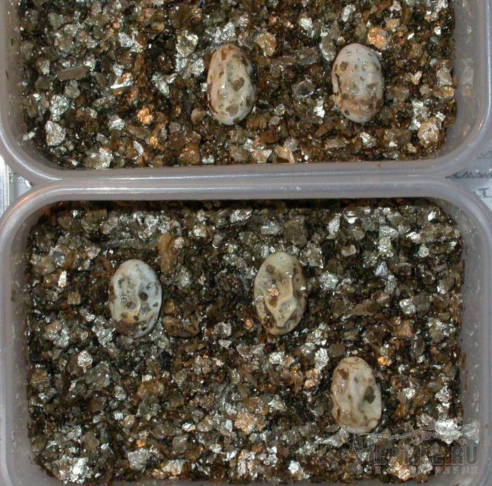 Температура инкубации менялась - днем до 32, ночью до 27, т.к. контейнер с яйцами стоит над террариумами, влажность поддерживал такую, при которой в контейнере держится конденсат