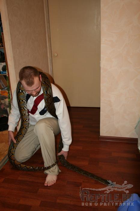 Красивый зверь, и добрый прям с первого дня, как видно. Вот только размер, с Вашего позволения, поставлю под сомнение... На вид там чуть больше 3м, до 3.5-3.6 не дотягивает, мне кажется.