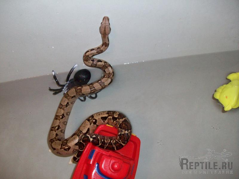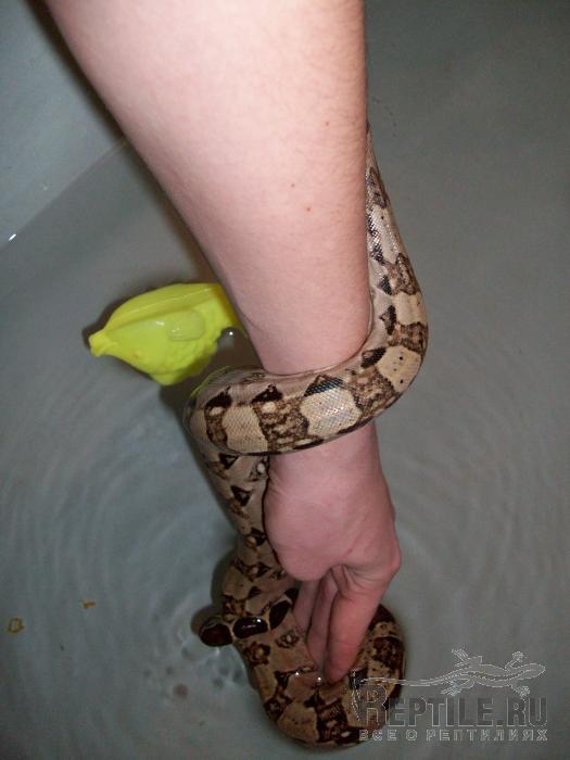 Ваш красавчик наверно всю ванну занимает Интересно как Вы его купаете? Кстати, Для такого размера в терр чуть ли не ванну надо ставить? Или большим змеям поилки достаточно?
