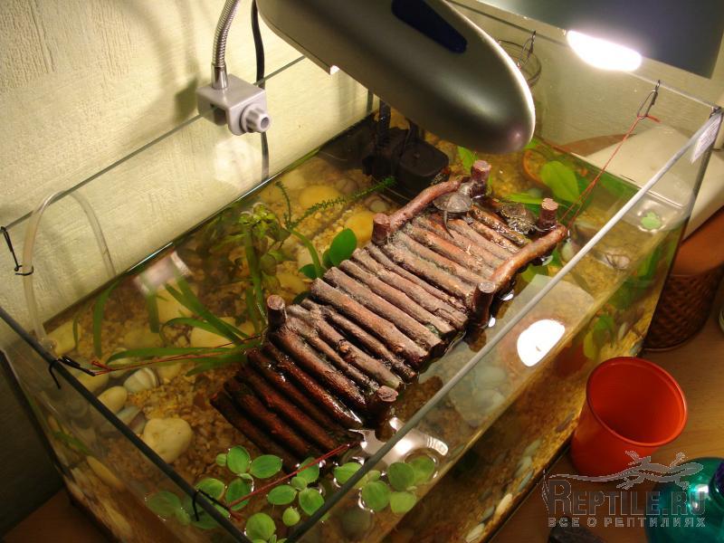 Свежая модная тенденция делать остров на 2м этаже (надстройка). Достоинства очевидны: аквариум используется полноценно, много места для плавания. Большая площадь сущи:много простора для фантазии. Например, на англоязычном форуме Turtletimes.com описан процесс изготовления 2-го этажа