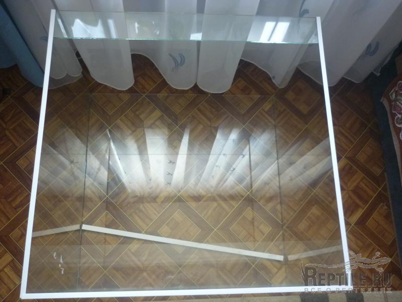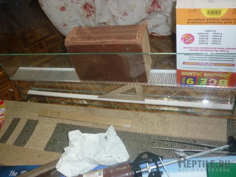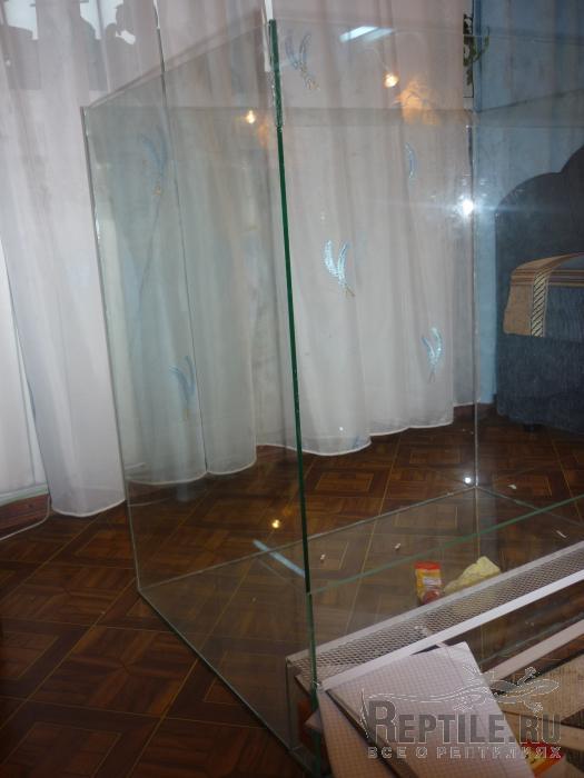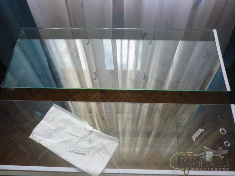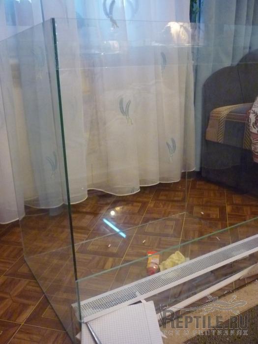 дальше перевернул террариум на заднюю стенку и закрепил 2мя полосками стекла