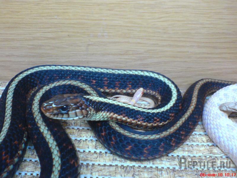 Змеи отлично берут заморозку, а так же части рыбы или лягушек. Одной рыбой по идее можно обойтись, если кормить живой аквариумной сем пецилид, и разморозкой лосося. Но при этом желательно будет добавлять в корм витамины. В Европе обходятся без кормовых лягушек, поскольку они там под охраной, но у нас проще все же земноводных найти, чем заморачиваться с рационом.
