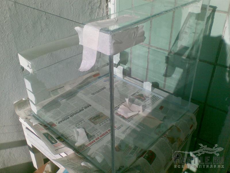 на стыки стекол наносим силикон (я взял специальный аквариумный)