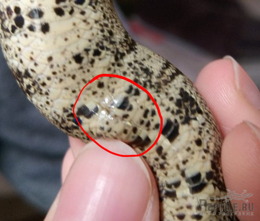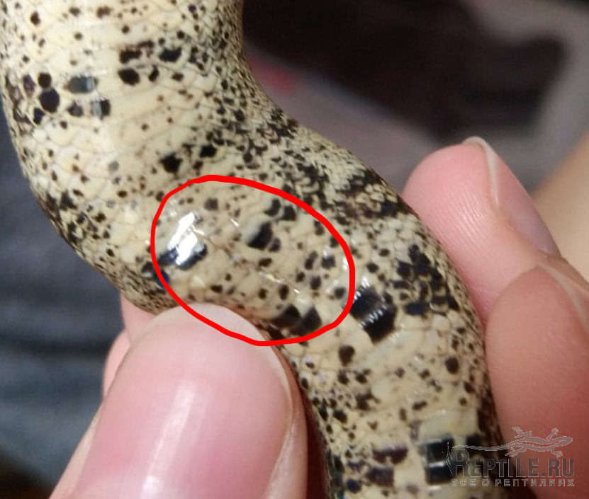 Вчера приобрела малыша констриктора, сразу после двухчасовой поездки был отправлен в пластиковый садок на бумажные полотенца отходить от стресса. Ночью змей нагадил, так что сегодня утром первым делом поменяла полотенца, заодно решила подробнее осмотреть его живот (смотрю всегда на наличие клещей или грибков), и обнаружила там порез. Тут же облапала все края поилки, укрытий и вентиляционных отверстий, ничего острого не обнаружила, муж считает, что травма не свежая. Удав на руках спокойно не сидел и все пытался уползти, на прикосновение к ранке не реагировал (возможно, потому что уползти ему было важнее). Лежит в обогреваемом углу (30°C круглосуточно).
