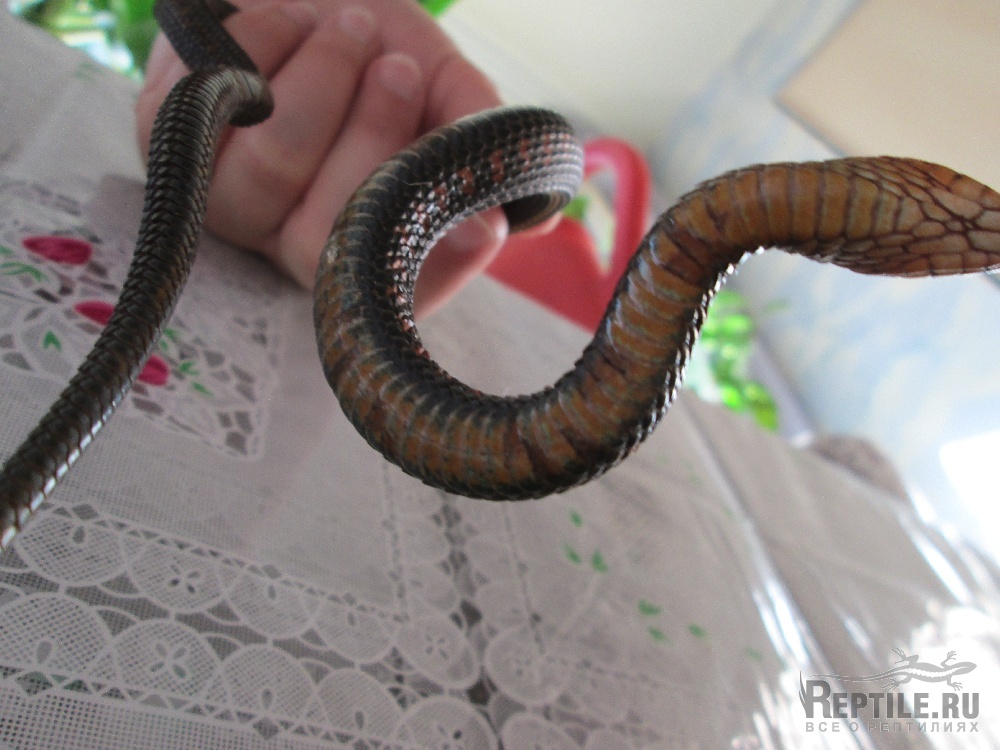 Странно,вроде содержится змей на кокосовой крошке, которая смачивается регулярно... Ест хорошо, только недавно заметила, что рыбу срыгнул, но это или из-за стресса (зверь немного пугливый), или не понравилась, тк почти только лягушками кормили. А бетадин снова капать?