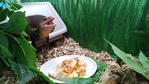 Поведение: достаточно цивилизованное, агрессию мы уже давно проработали. В террариуме бубнит, на руках успокаивается и с осуждением смотрит на тебя. Ест с пинцета или тарелки. Любознательный, часто забирается повыше и пялит что ты там в комнате делаешь.