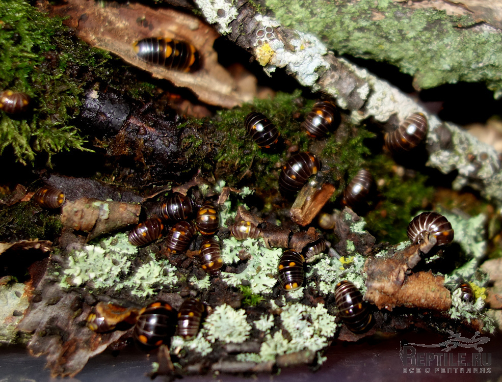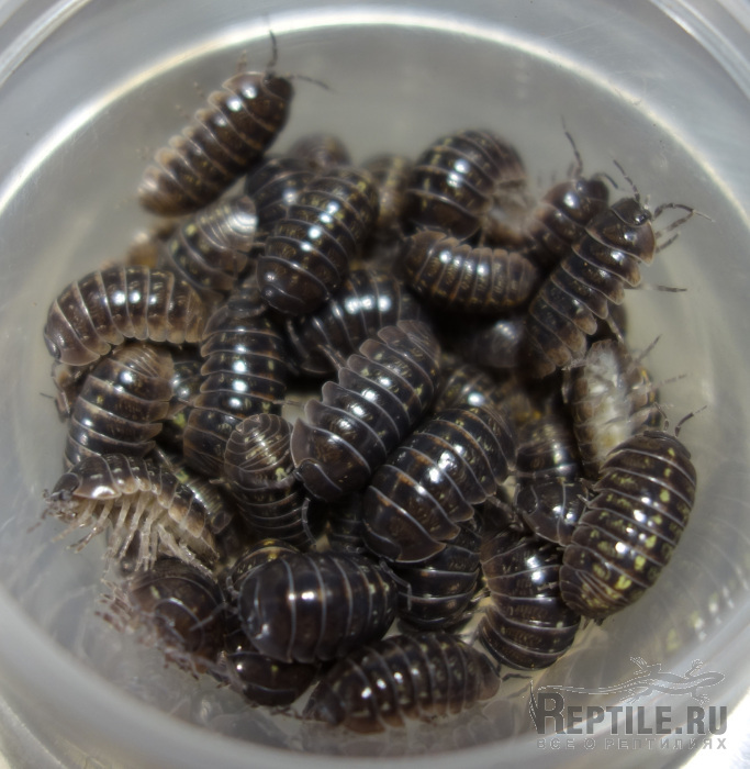 мокриц-броненосцев Armadillidium sp. Montenegro, подростки разных цветовых морф, тёмно-серые без рисунка по 20 р., пёстрые по 50 р.