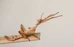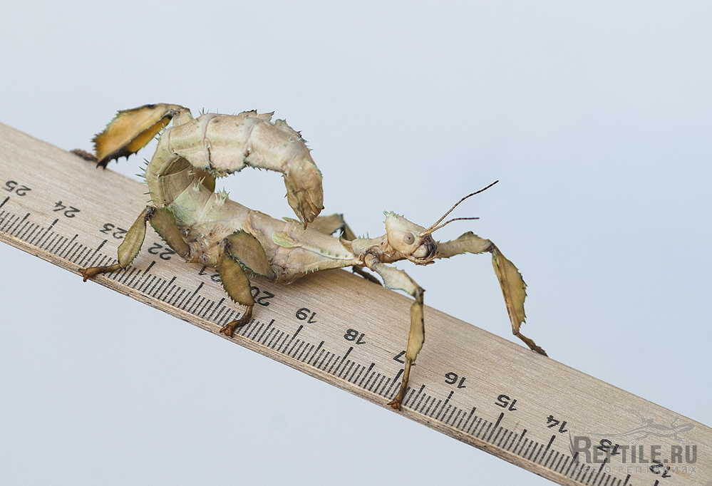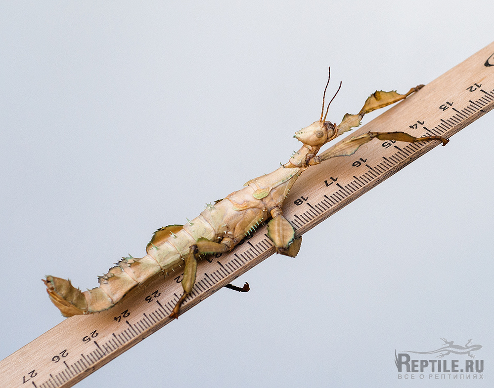 Возраст 4 - 5 линек, размер виден на фото. Корм - листья малины, дуба, ежевики и др. Температура 22-28 град. С, влажность 40-70% (специально не регулирую, ни температуру, ни влажность). По содержанию и разведению могу проконсультировать.