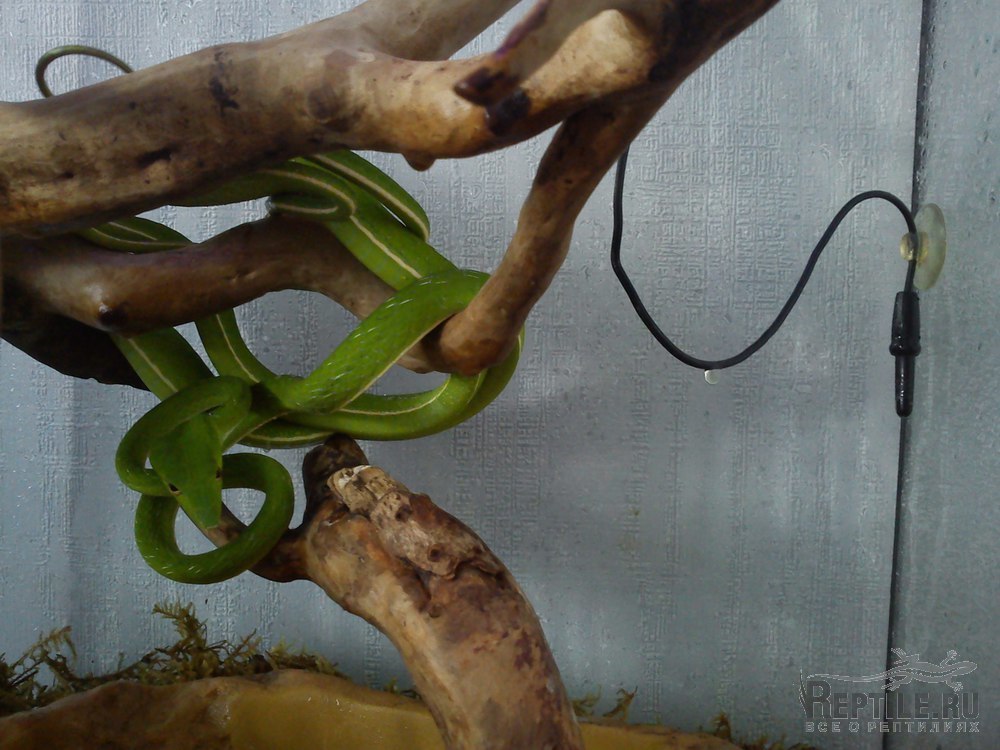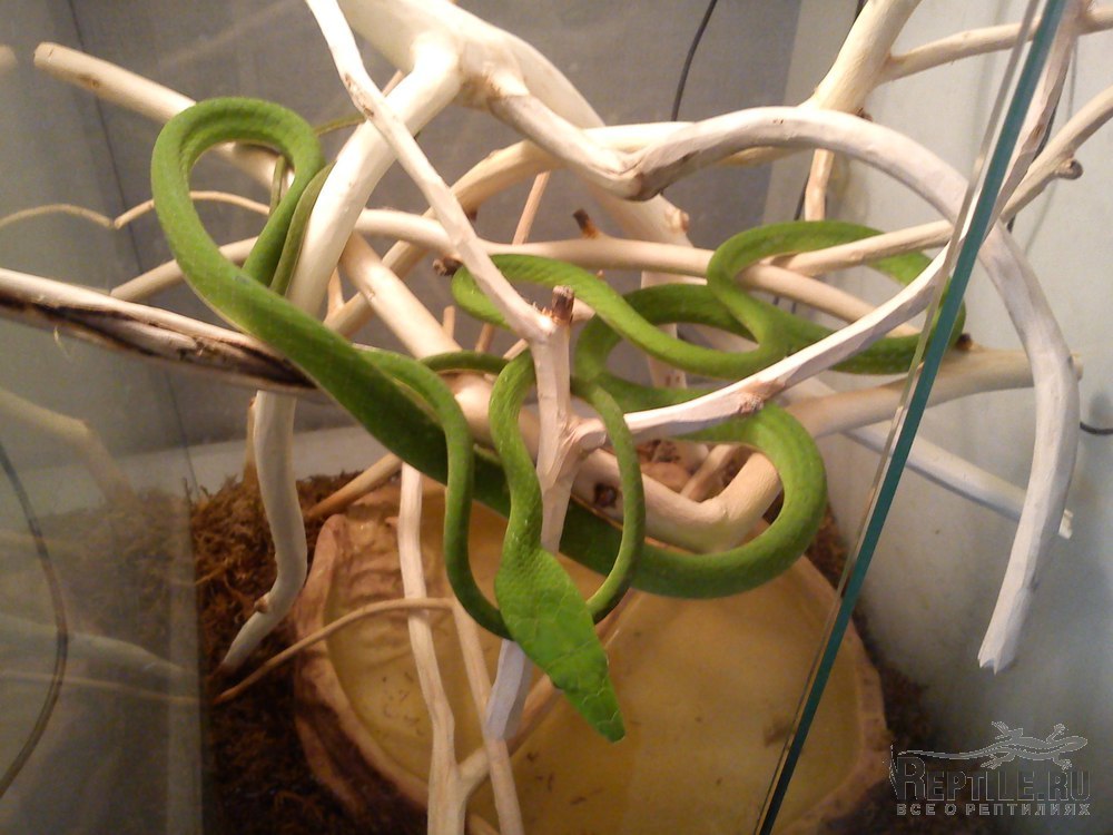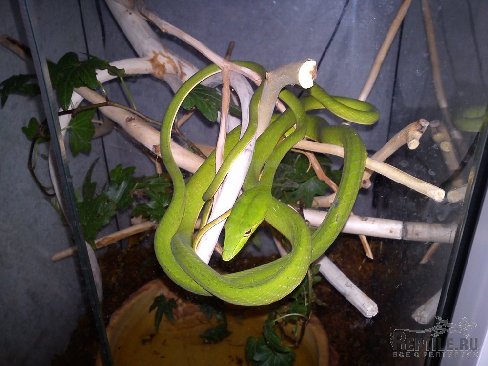 Плетевидная змея природник, живет у меня чуть больше года. Очень активно ест, кормится только живыми лягушками.