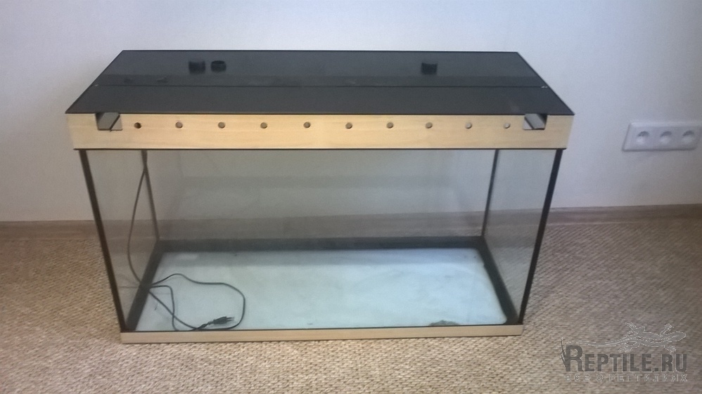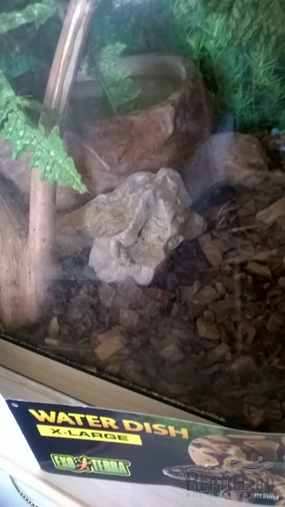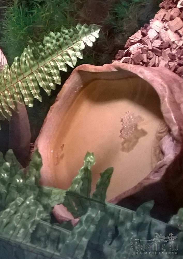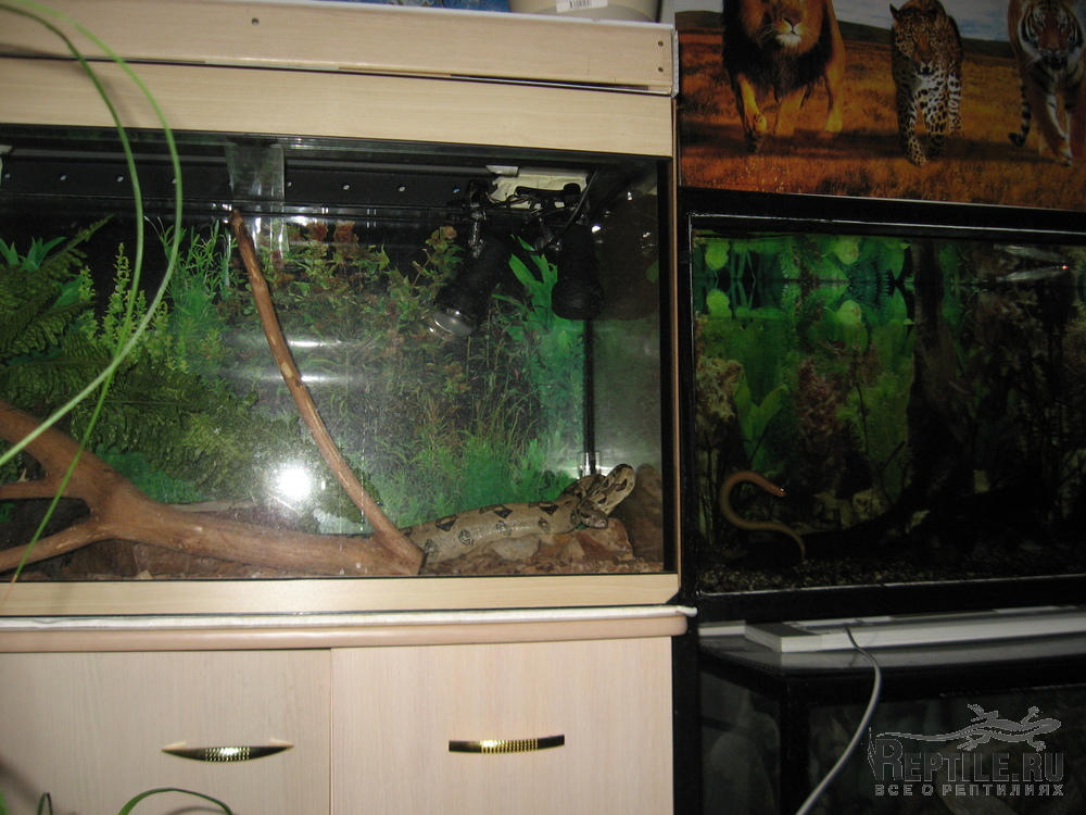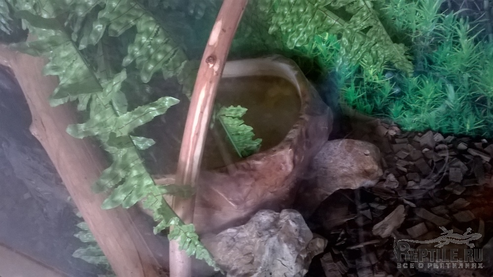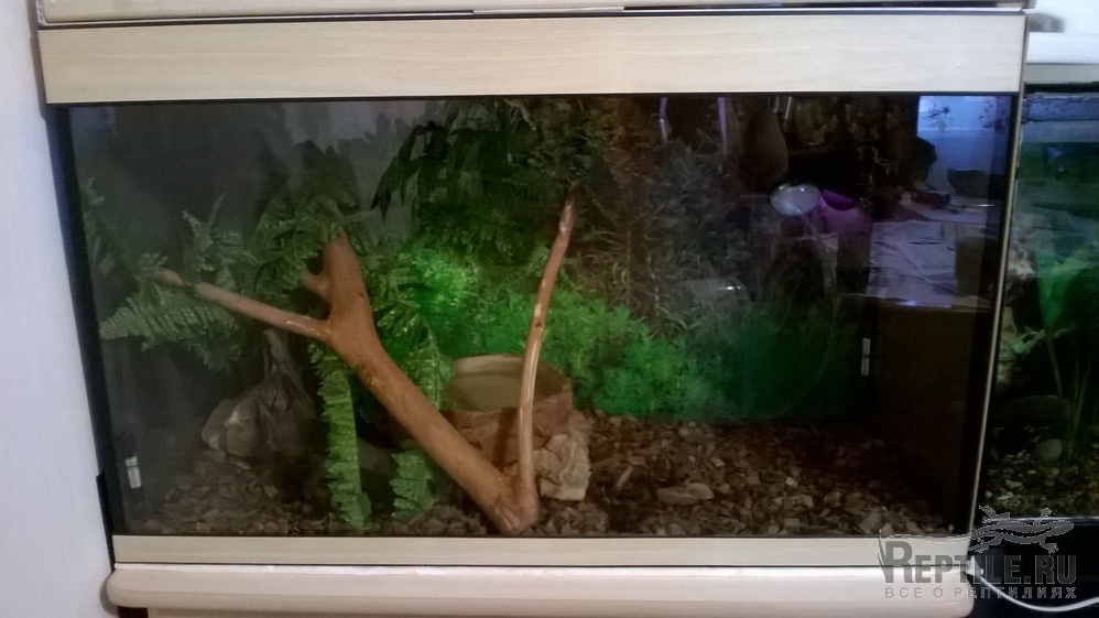 Есть жилище 80х40х55см, там ночная и дневная лампы обогрева, люминесцентная УФВ, поилка большая.