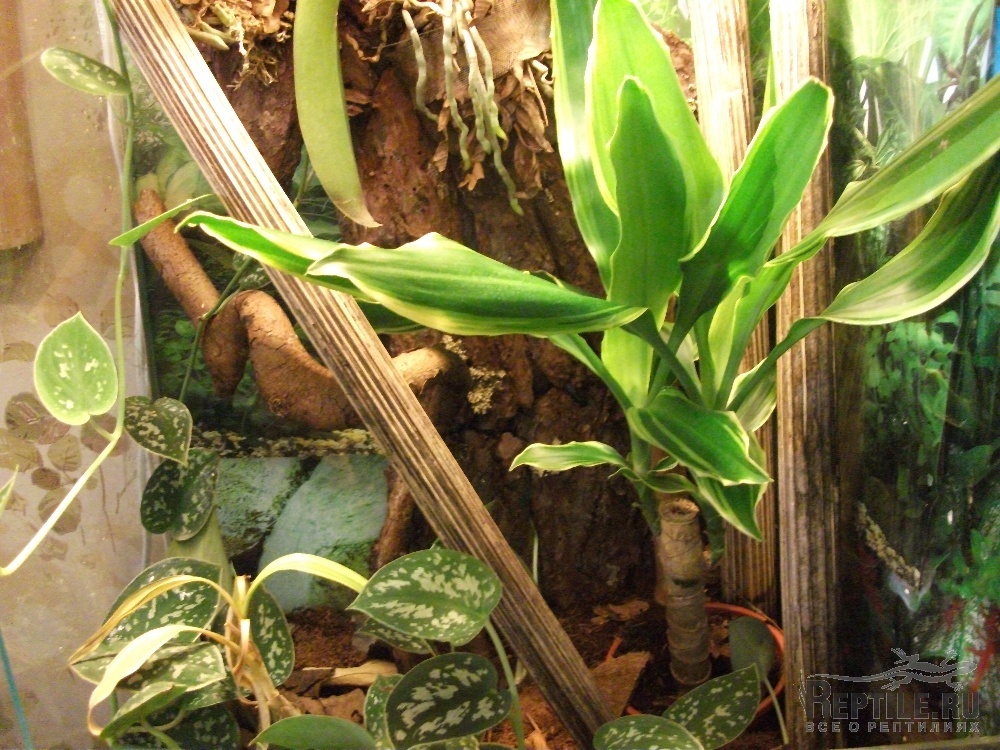 Проблема такая: одно время была драцена душистая, но, по-видимому, звери ее просто затоптали, либо ей не хватило места (его немного) или света.