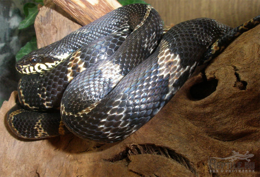 - крайне эффектно окрашенные змеи, зачастую принимаемые за смертельно ядовитых. Окрас включает в себя поперечные кольца красных, белых, черных, серых цветов. Королевские змеи очень подвижны, имеют несколько нервный темперамент, скрытные, ни за что не упустят возможность сбежать. В террариуме необходимо установить укрытие, в котором змея будет проводить значительную часть времени.