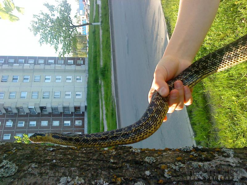 Я опасаюсь далеко и надолго уносить полоза от террариума. Устанет и начнет стрессовать, а я не смогу сразу вернуть его домой - нехорошо получится. Тем более что в прогулках нет никакой необходимости, чисто чтоб побаловать... еще не хватало этим баловством вред причинить.