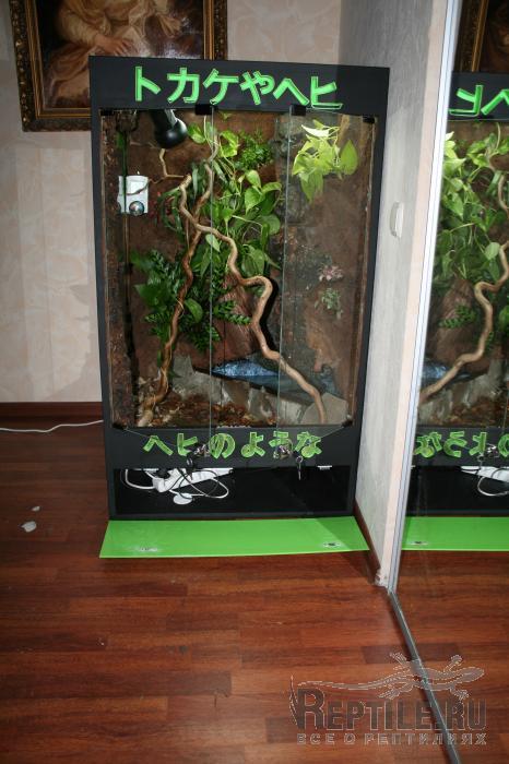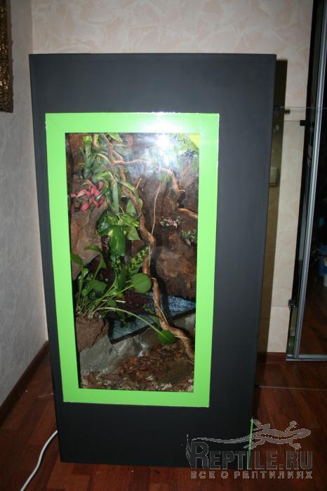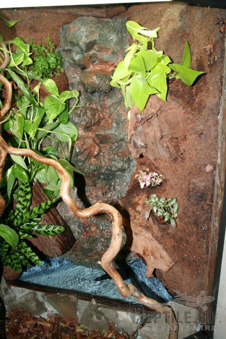 натуральным камнем, 80-см водопадом и водоемом. Сделал слив для замены воды, поставил 2 рептиглошки 5.0 на 60см по 20вт. На зеркалку поставил диммер (оказалось оч удобно, всем советую))