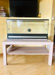 Размеры: 80 см —длина, 40 см — высота, 40 см — ширина. Раздвижные дверцы, вентиляция снизу (алюминиевая сетка) и сверху (свободное отверстие, удобно для расположения ламп и светильников). Был в использовании 2 года, состояние хорошее, из минусов — небольшая ссадина на стекле у ручки.