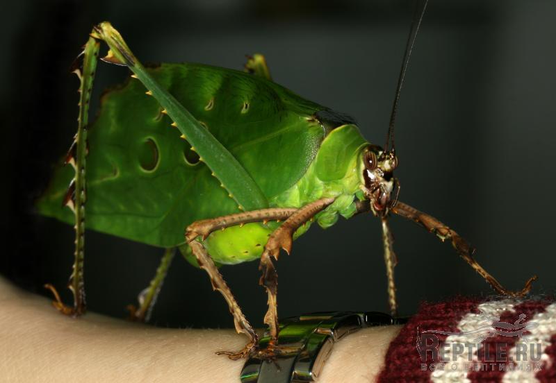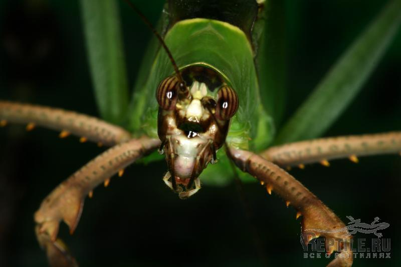 Одному оранжерейному кузнечику не повезло - у него только один нормальный глаз, но он не расстраивается.