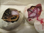 Из пяти яиц вылупились три , два стухли на вторую неделю(думаю были неоплодотворенные),самка высиживала сама