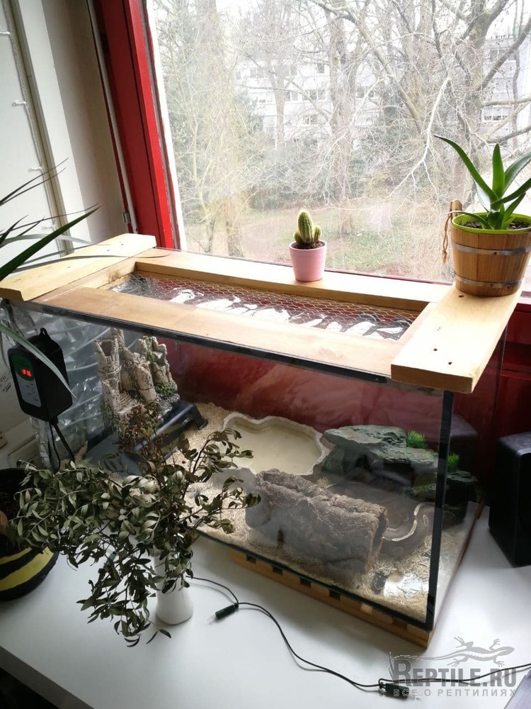 Я уезжал из страны на 3 месяца и дал присмотреть за питоном, как казалось бы, ответственным людям. Условия хранения были бюджетные, но проблем не наблюдалось. До моего отъезда питон жил в небольшом пластиковом контейнере из IKEA, из подогрева был коврик для рептилий. Влажность и температура были в норме, так как ёмкость небольшая. Однако мои друзья решили сделать небольшой сюрприз, и купили ему большой террариум ( 86x40x35cm ), но не подумали, что для большого террариума нужен соответствующий обогрев. В итоге змея 3 месяца обитала в комнатной температуре, обогрев был только от маленького коврика и батареи. Предпологаю что температура днём была 21-23 градуса, ночью 18-20. Про уровень влаги вообще молчу.